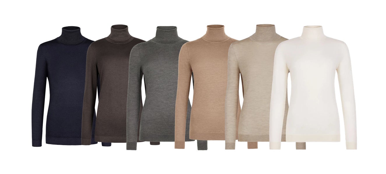 FALCONERIのアイコニックなカシミヤ「ウルトラファイン2.50」セーターは、滑らかな手触りのカシミヤニットセーターで、保温性と通気性に長けたアイテムです。モンゴルと内モンゴルに生息するカシミヤ山羊の下毛を梳き、50番手の梳毛と撚糸を合わせて作る、非常に軽くて丈夫な糸です。高度な伝統技術を受け継ぐ職人が繊細に仕上げた18ゲージのニットは、上品な光沢感を持ちながら、驚くほど軽く柔らかな極上の肌触りです。 ドルチェビータの愛称を持つタートルネックをはじめ、クルーネック、Vネックなど展開しています。