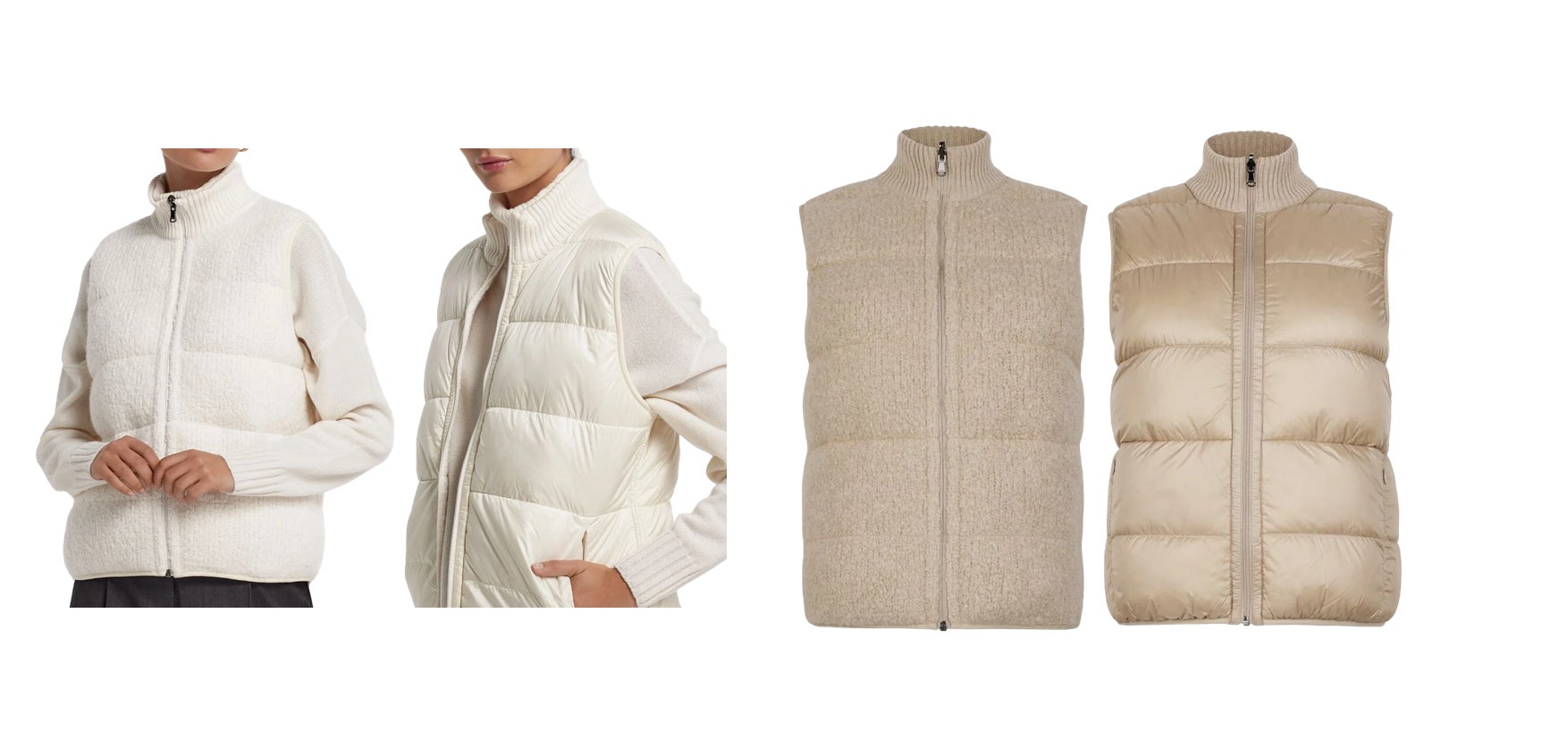 また、FALCONERIのもう一つのアイコンリバーシブルダウンベストは、ウルトラソフトカシミヤを使ったケーブル編みやカシミヤブークレなど、表情豊かなアイテムが揃います。両面で楽しめるのでご旅行やゴルフなどスポーツでも活用できます。