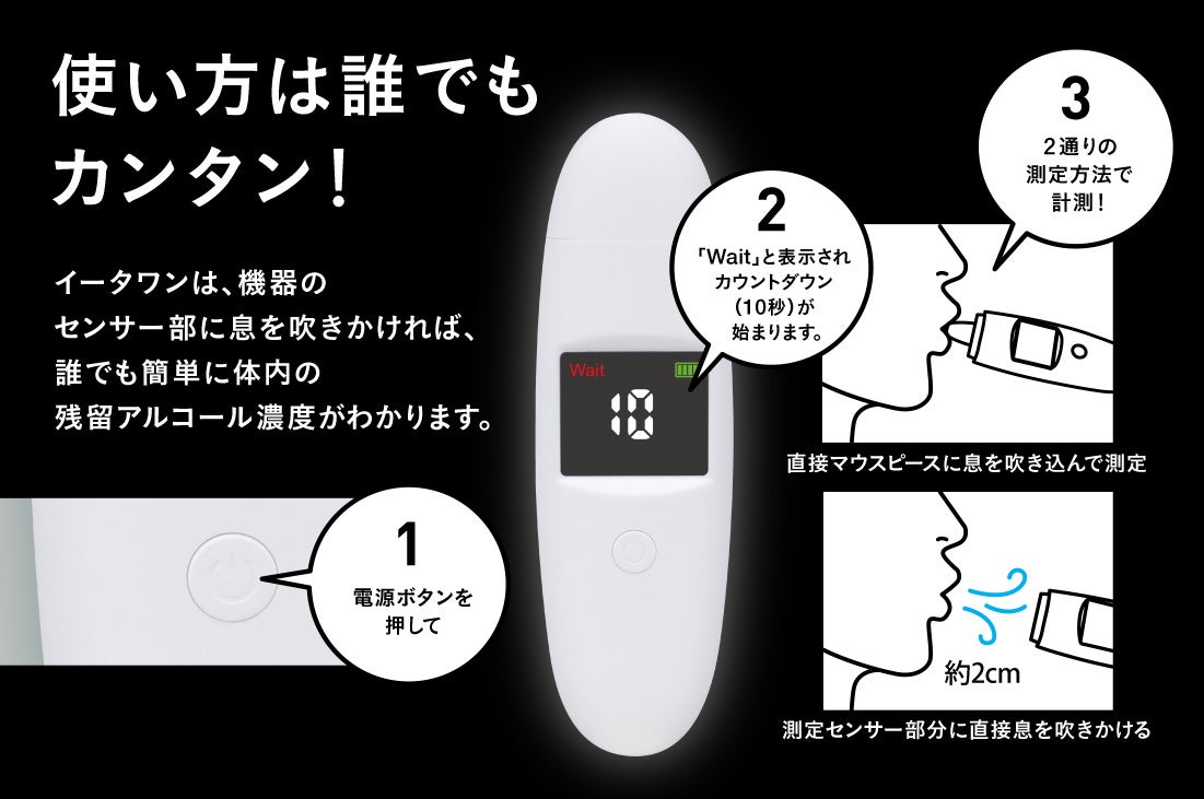 【酒気帯び確認義務化に備えを!】息を吹きかけ体内の残留アルコール濃度を簡単測定「アルコールチェッカー イータワン IGAC03」新発売