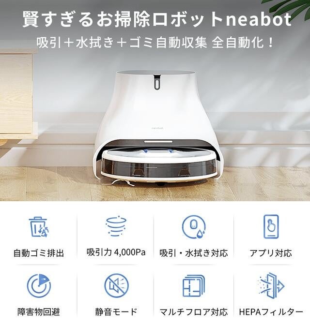 ◆対象商品【Neabot NoMo Q11】4000Pa マッピング機能 お掃除ロボット超薄型&静音設計 障害物検知 自動充電 落下/衝突防止 アプリ制御 Alexa対応(ホワイト)