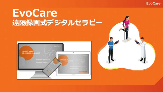 「EvoCare」システムは、ドイツSIEMENSの元開発部長が開発し、現在ではドイツ・スイス・オーストリアで保険適用されている、リハビリテーションをオンラインで処方・実施を記録し、医療機関と患者様を「遠隔リハビリ」でつなぐリハビリテーションの医学管理プラットフォームです。