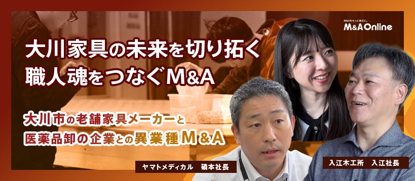 「M&A Online Prime」新たな動画を公開!大川家具の未来を切り拓く、職人魂を繋ぐM&A~ヤマトメディカル×入江木工所~