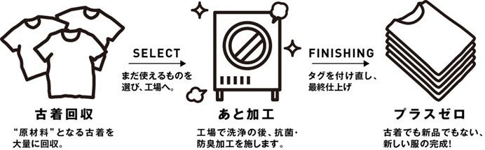 富山のデザインスタジオ「ROLE」と、東京のアパレルブランド「ALL YOURS」が共同で運営を行う、古着を原材料にした機能的な服作りの実証実験プロジェクト。今回のテーマは『臭いがつかない』機能と『肌あたりをよくする』デザインで、“足さないモノづくり(プラスゼロ)”を掲げ、消費循環に新たな楽しみ方を提案します。