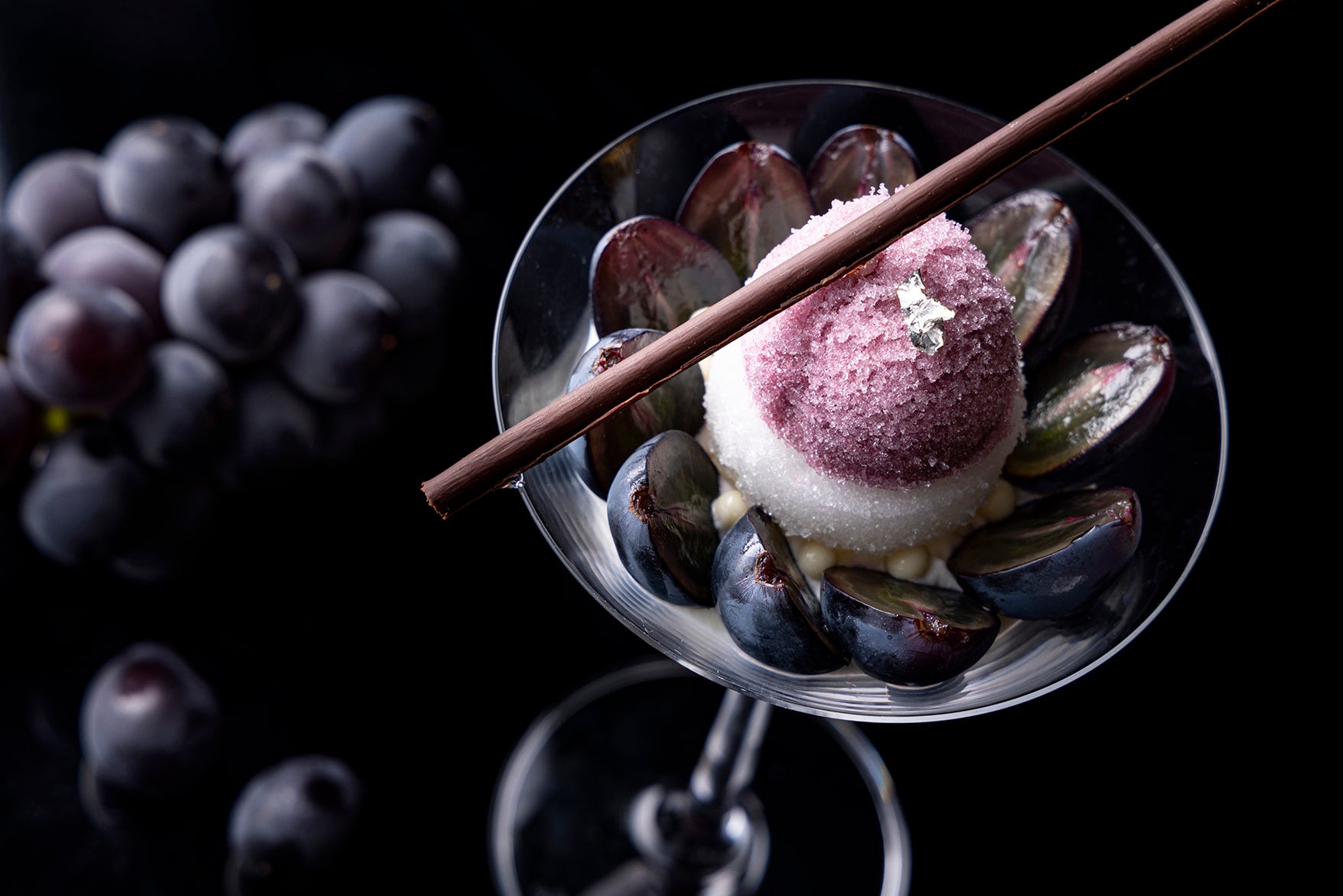 爽やかな酸味のベリーコンポートやグレープゼリーをミルキーなマスカルポーネクリームとシナモン風味のチーズクリームアイスクリームが包み込むリッチな味わいの「レザン・フロマージュ」はたっぷりのフレッシュ巨峰を用い、薫り高いグレープアイスクリームとパリッとしたはちみつキャンディがアクセントになっています。黒紫色の宝石、巨峰の豊かな味わいと濃厚なチーズが織りなす大人のマリアージュを心行くまでお楽しみください。樽の中で長時間熟成されたジャパニーズウィスキーにハーブリキュールをブレンドしたZATTAオリジナルカクテル「KEYAKI」や「サングリア」と一緒にゆったりと味わうのがおすすめです。