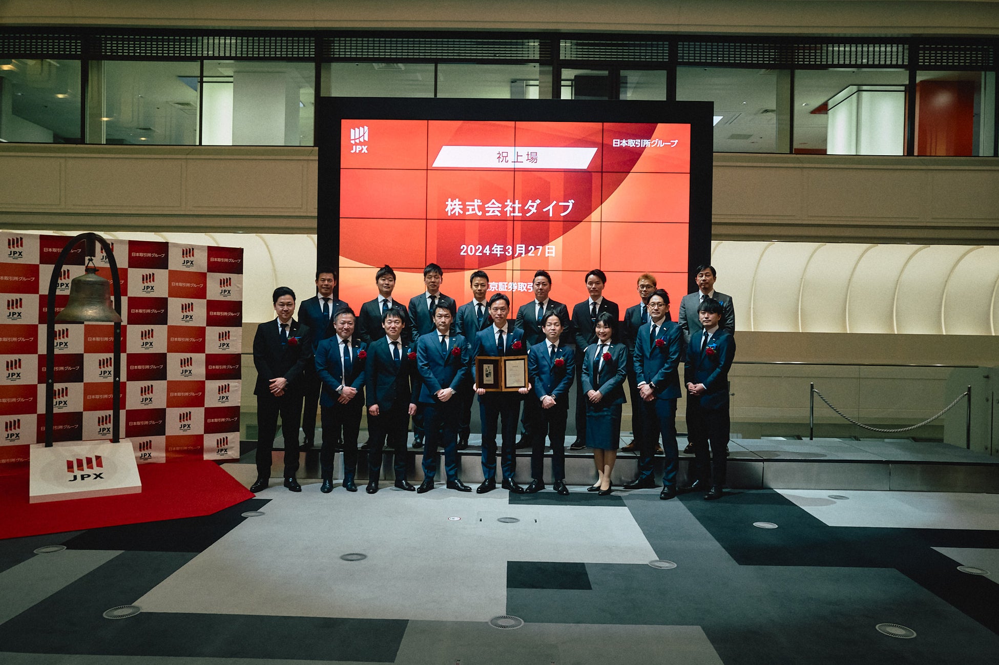 株式会社ダイブ(本社:東京都新宿区、代表取締役:庄子潔)は、本日2024年3月27日に東京証券取引所グロース市場(証券コード:151A)へ新規上場いたしました。