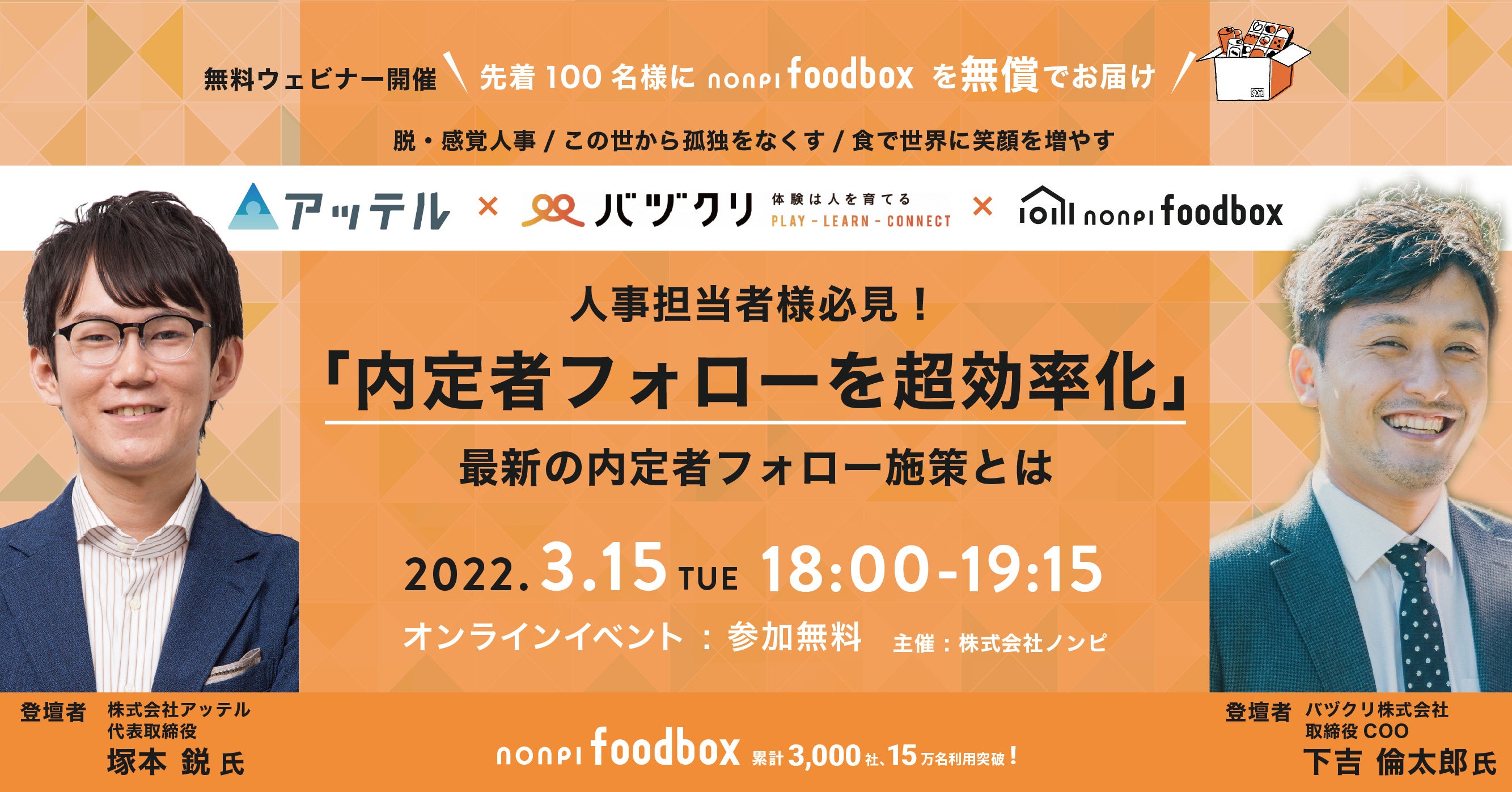 【nonpi foodbox™️のHRセミナーシリーズ】最新のHRツールを提供する2社に聞く!内定辞退を防ぐ最新の「HRノウハウ」公開ウェビナーを開催!内定者フォローの成功事例をご紹介します