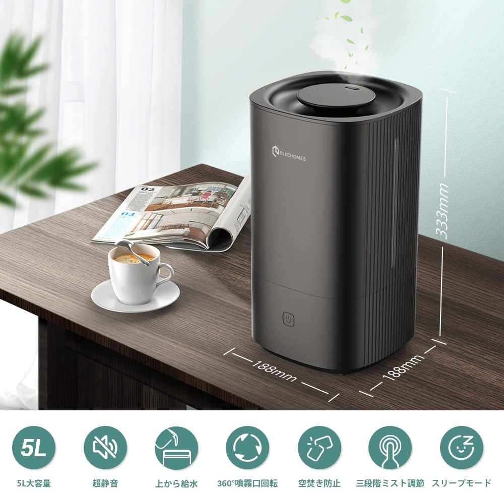 【Elechomes】実は夏にも活躍?5L大容量の超音波加湿器
