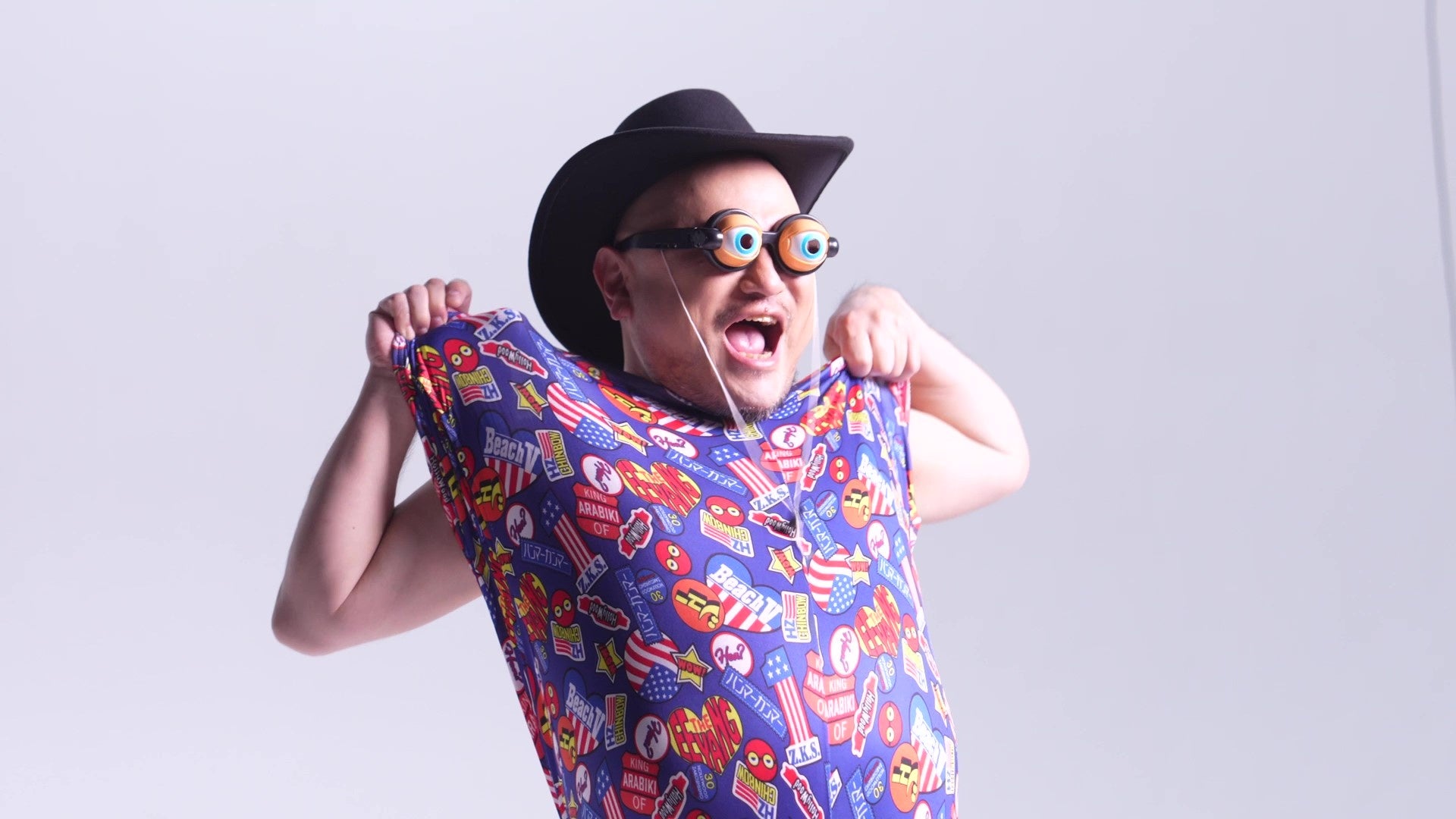 ピン芸人になってまだネタがあんまり決まってなかった時に、バイキングの小峠と面白いもの見つけに行こうか、 って入ったお店で見つけたんですよ。ダボダボの伸びるズボン。で、これおもしろいやん!伸びるやん!って買った感じですかね。今は公式グッズでオリジナル作成しています。