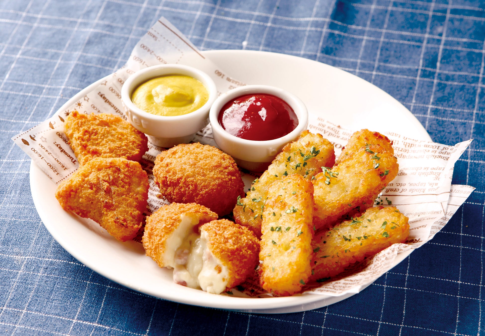 内容:特製生ハムのクリームコロッケ 2個、ピザーラナゲット 2個、ローステッドポテト 5本