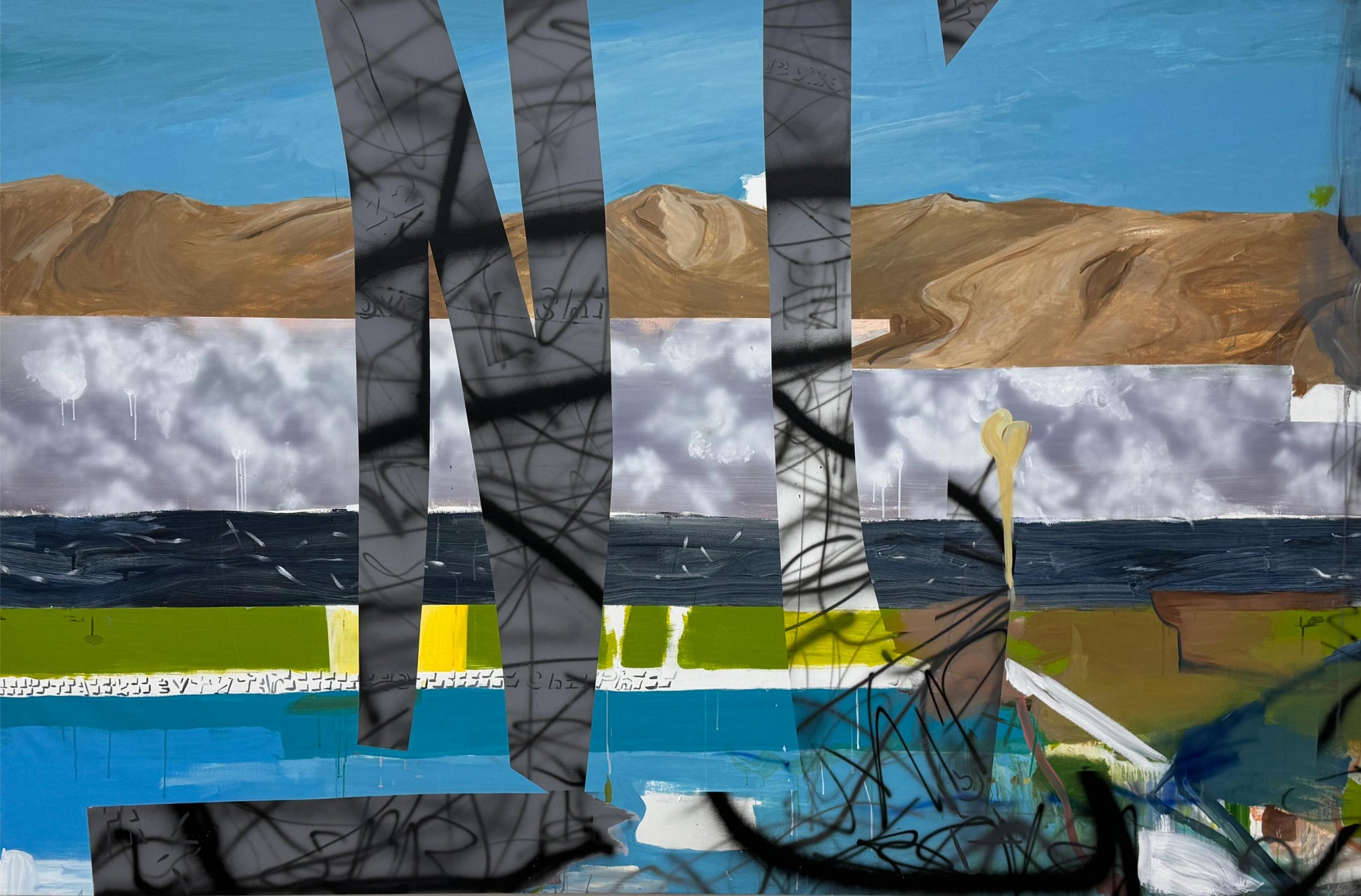 高尾は、1998年大阪生まれ。現在は、京都を拠点にしながら東京で活動も行っています。現代における風景画を追求し、文字や記号、写真、建物などの身近なイメージから巨大なイメージをモチーフにしながら、複数の時間と複数の視点によって生み出される距離を持った絵画を発表してきました。