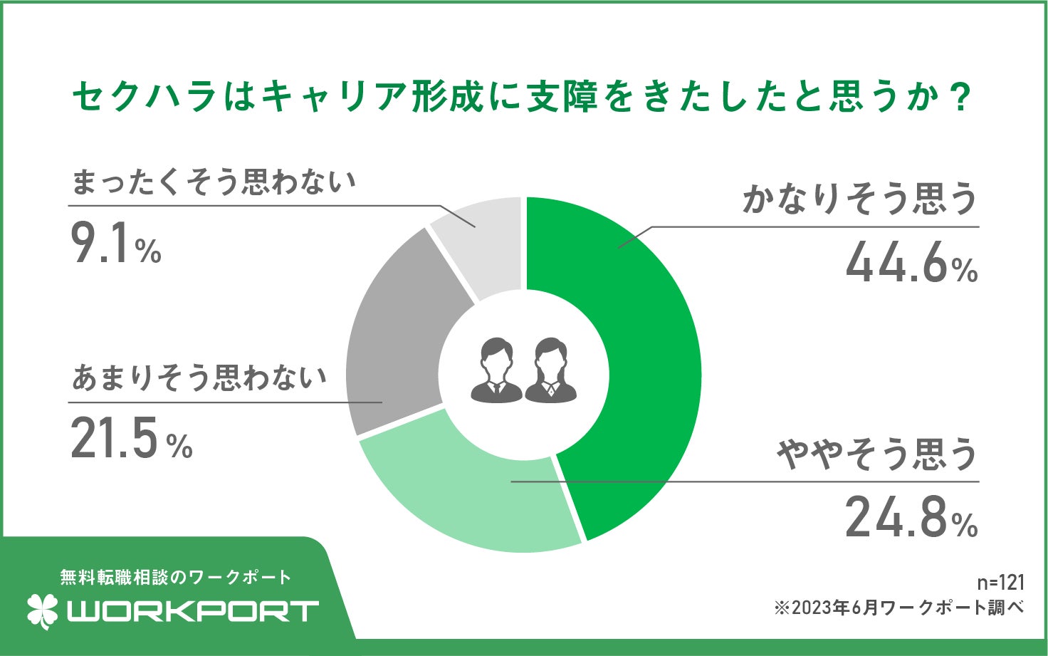 【セクハラのキャリアへの影響】7割近くが「セクハラがキャリア形成に支障をきたした」と回答