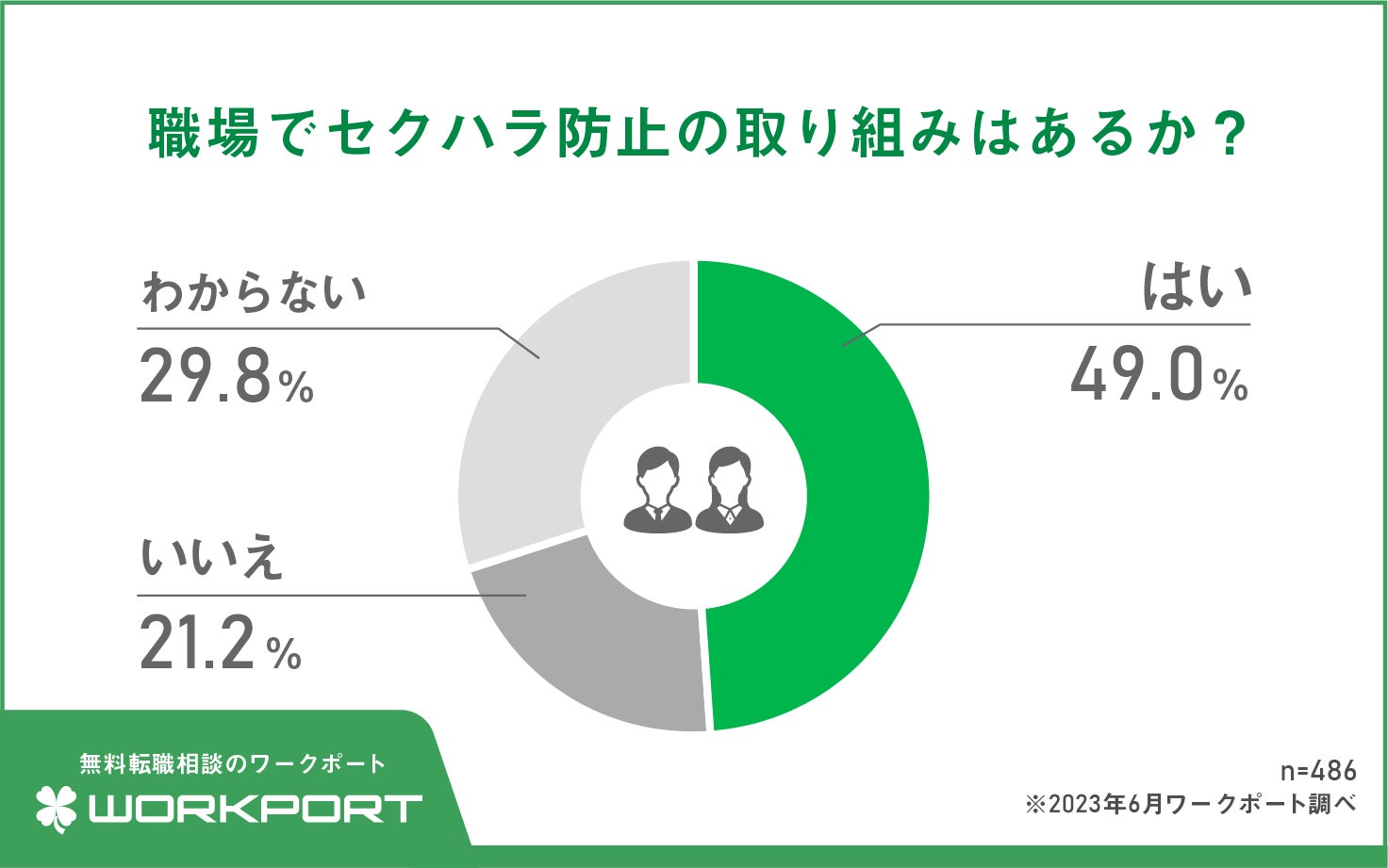 【職場のセクハラ防止策】約半数が職場でセクハラ防止の取り組みがあると回答 相談窓口や社内研修など
