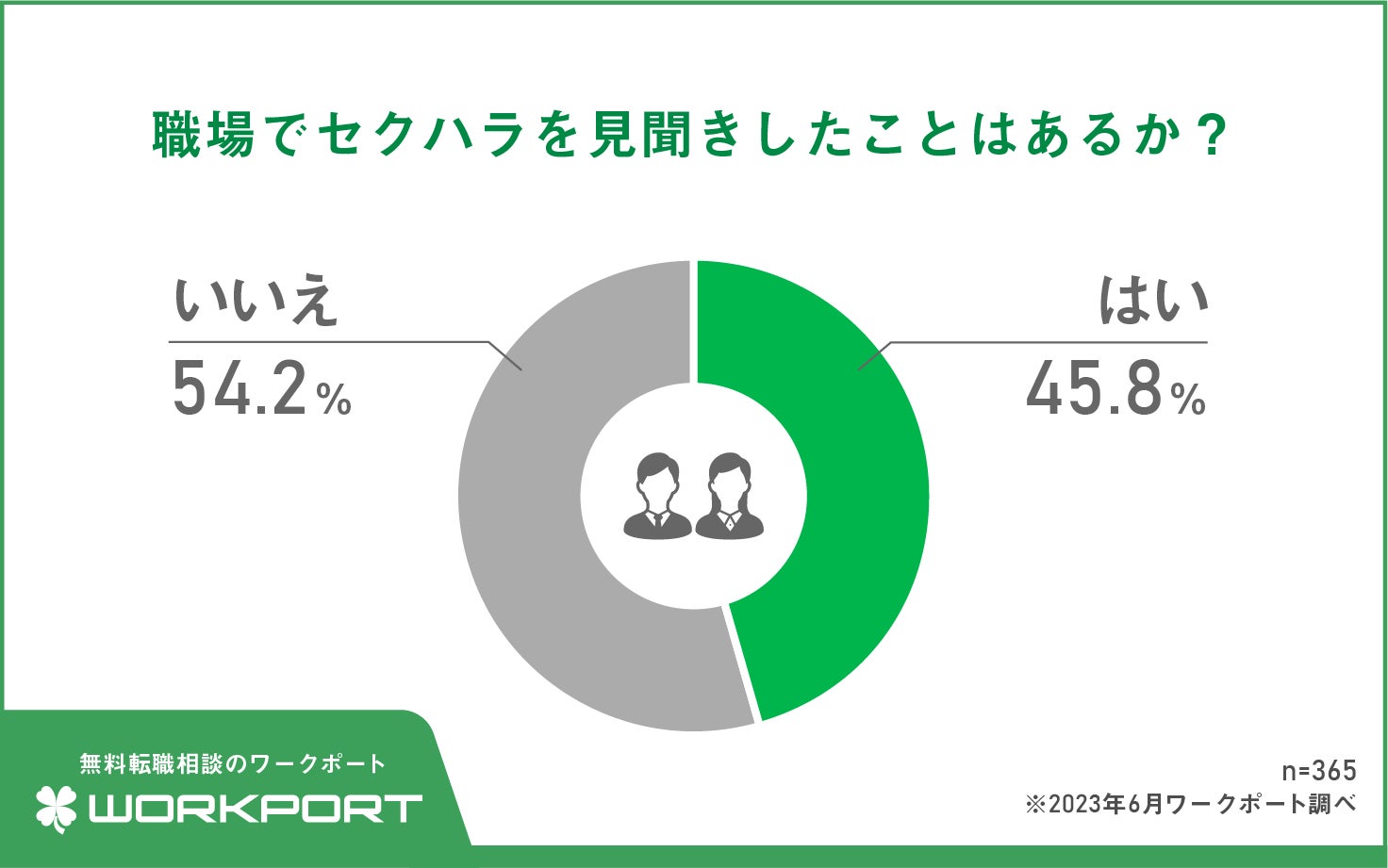 【職場でのセクハラ状況】職場でのセクハラを見聞きしたことが「ある」人は45.8%と半数近く