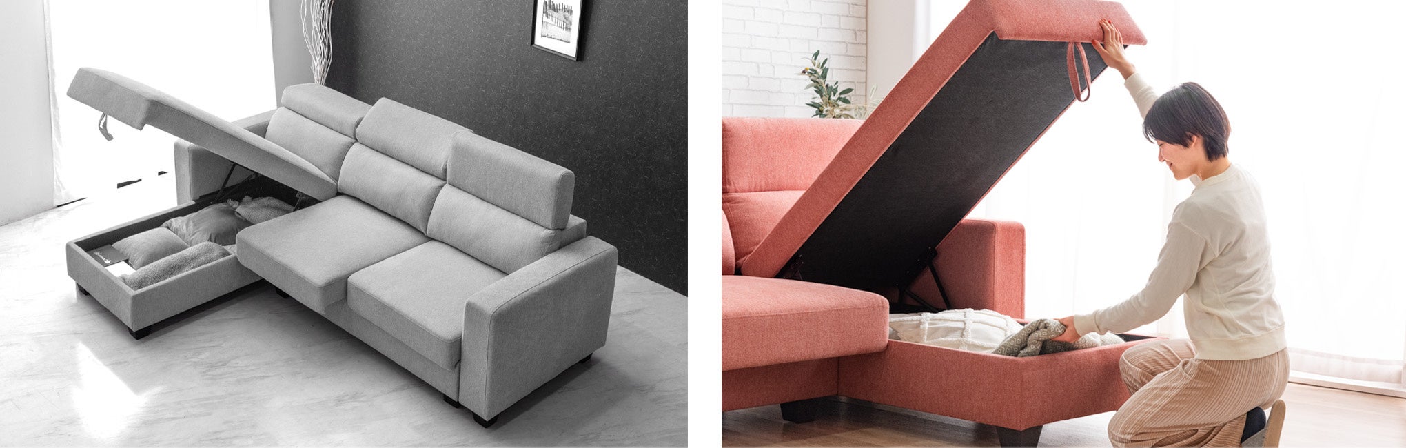 ◇物の出し入れも簡単な大容量125Lの跳ね上げ式収納付きのカウチ
