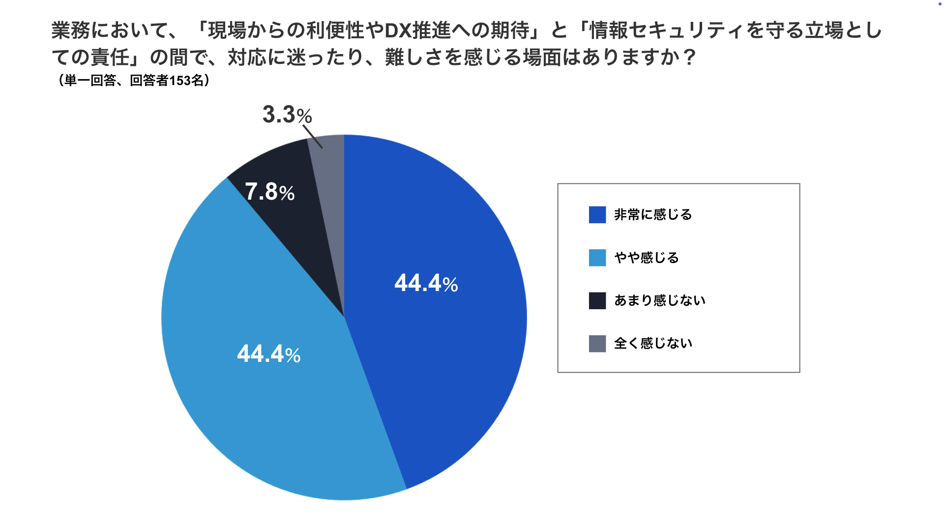 ● 約9割が、DX推進とセキュリティ責任の両立に課題があることが明らかになりました。