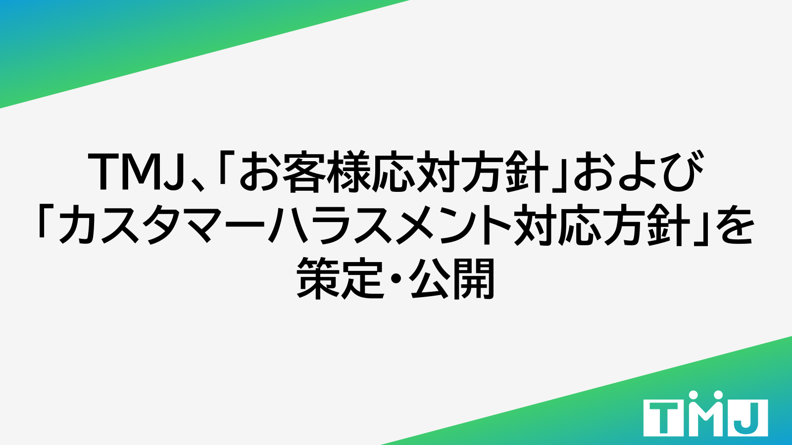 TMJ、「お客様応対方針」および 「カスタマーハラスメント対応方針」を策定・公開