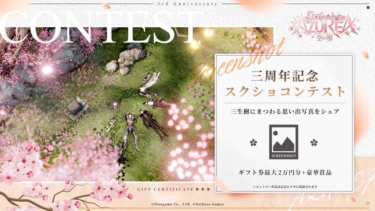 『AZUREA-空の唄-』公式X上では更に【思い出スクリーンショットキャンペーン】と【二次創作コンテスト】を実施。2月25日(火)から3月20日(木)にかけて実施された【思い出スクリーンショットキャンペーン】では、三生樹にまつわるプレイヤーの思い出にフォーカスしたスクリーンショットを募集。応募されたスクリーンショットは動画形式にまとめられ、三周年当日である4月13日(日)に公開されました。