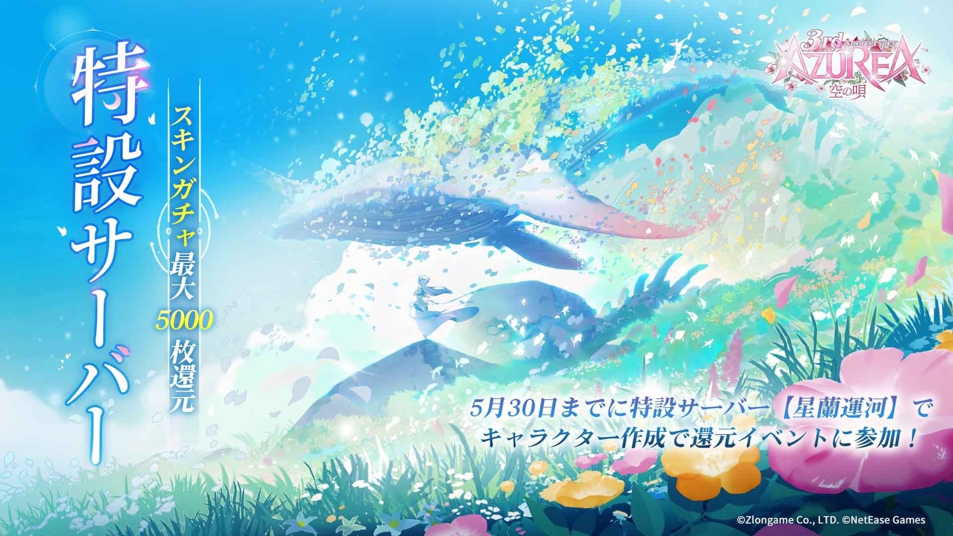 ZLONGAMEは、好評配信中のゲームアプリ【感覚が溶け込むファンタジーライフRPG『AZUREA-空の唄-』】が4月13日(日)にリリース三周年を迎えたことをお知らせいたします。この節目を記念し、ゲーム内ならびに特設サイトや公式YouTubeチャンネル、さらに公式X(旧Twitter)を通じて、多彩な企画が展開中です。