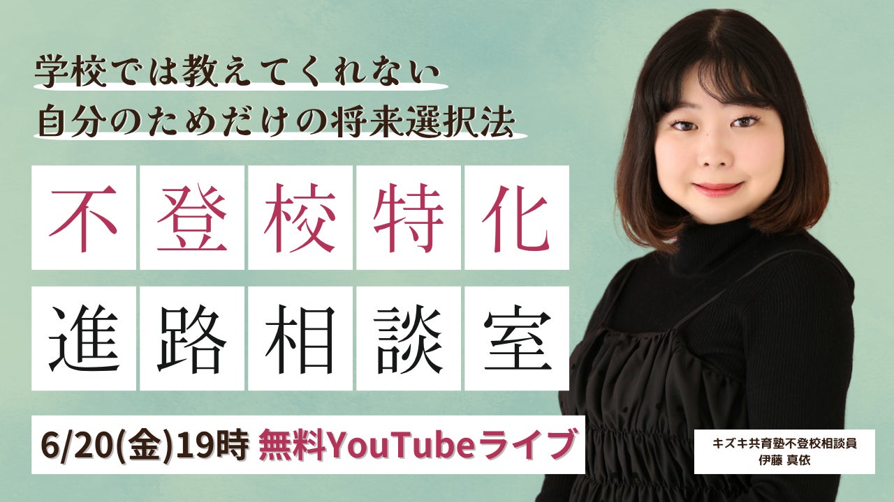 【不登校特化型の進路相談室】学校では教えてくれない「自分のためだけ」の将来選択法!6/20無料YouTubeLiveイベント(キズキ共育塾)