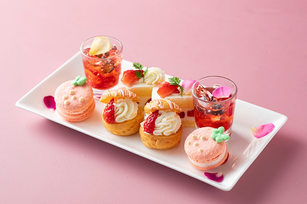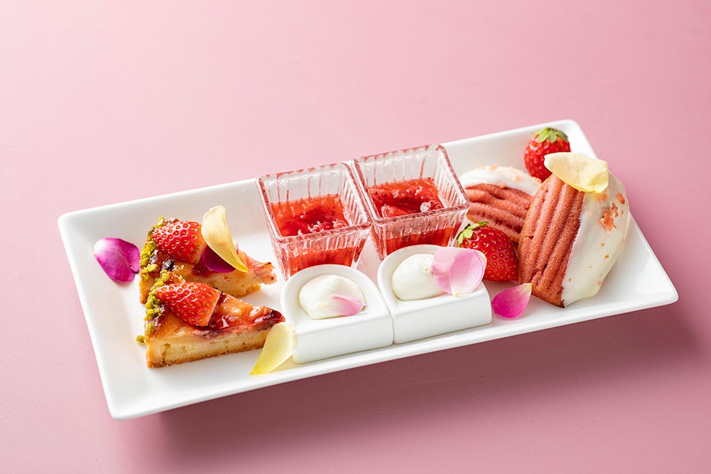 スイーツの王道ショートケーキやバラ香るジュレ、苺とハムのパニーニなど、甘酸っぱい苺づくしの幸せなひととき「苺とWABARA(わばら)のアフタヌーンティー」~ラウンジ サウスコート~