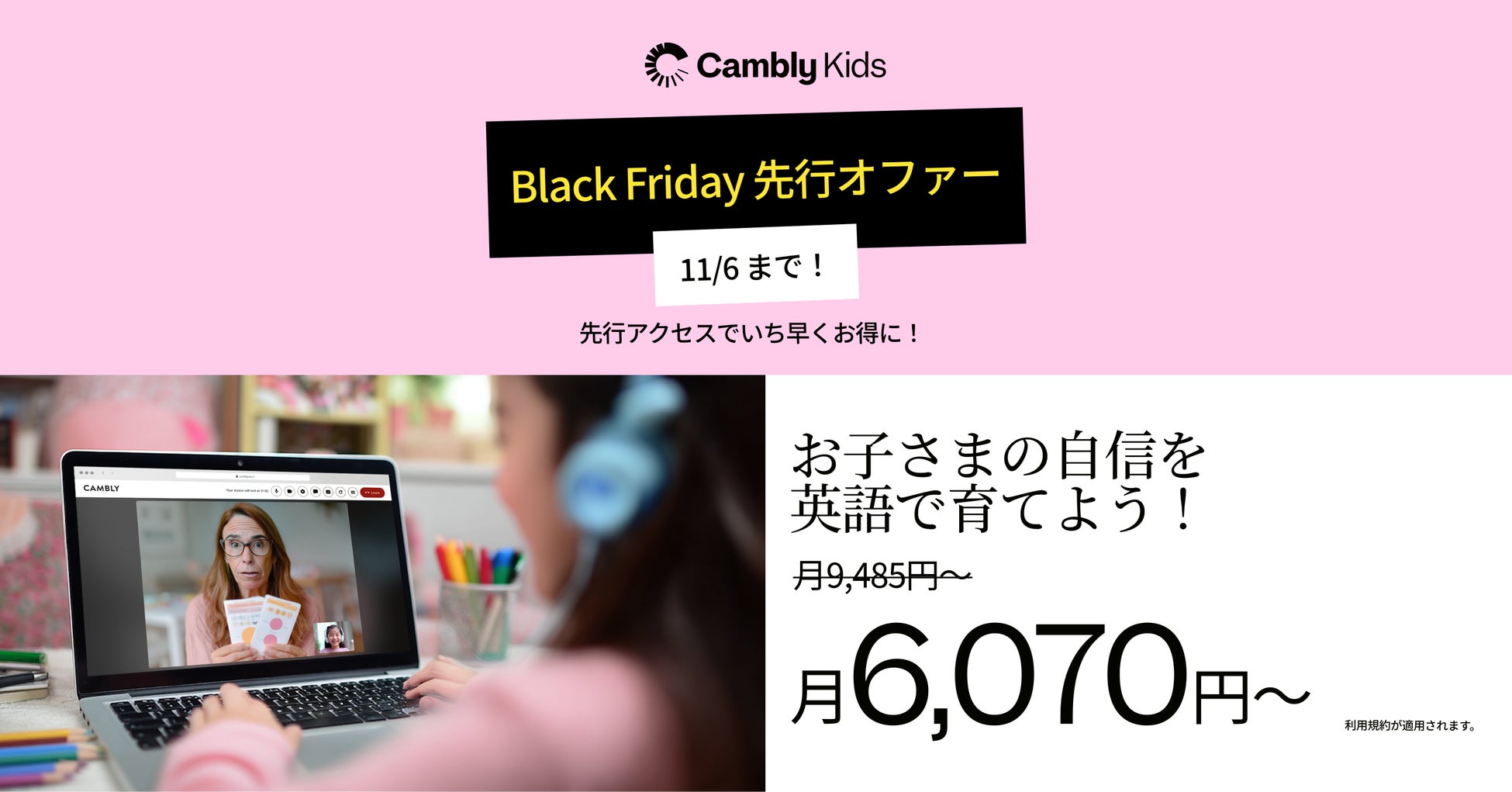 受講料が最大36%オフとなるこの期間は、お子さまの英語力を伸ばす絶好のチャンス。世界的なBlack Fridayセールが始まる前に、Cambly Kidsは「一生もののスキル=英語コミュニケーション」への投資をおすすめします。