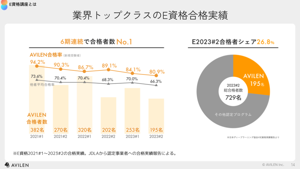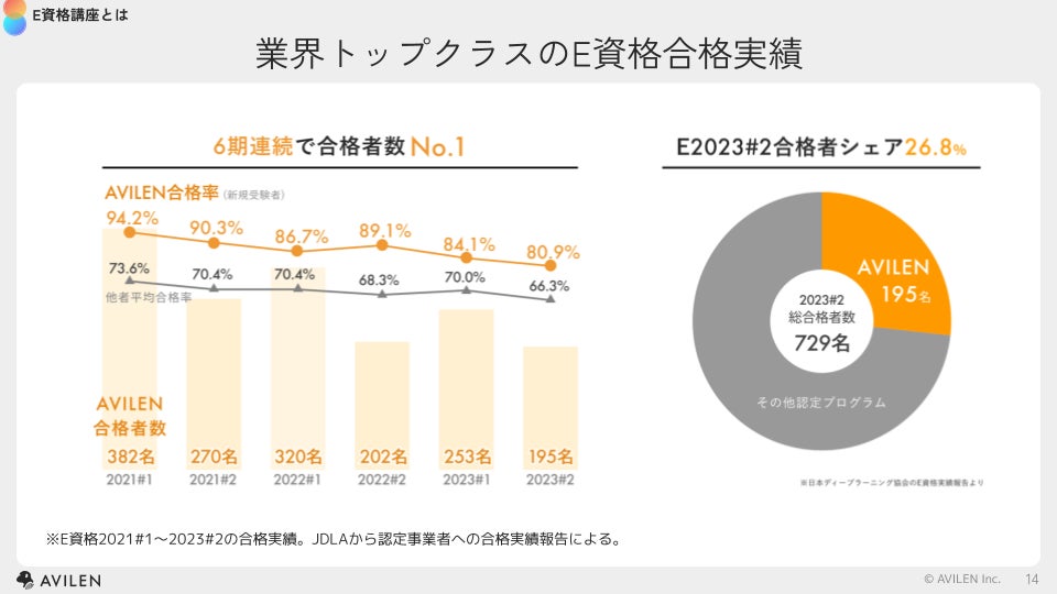 AVILEN、6期連続でE資格合格者数No.1を達成。2023#2は195名の合格者を輩出