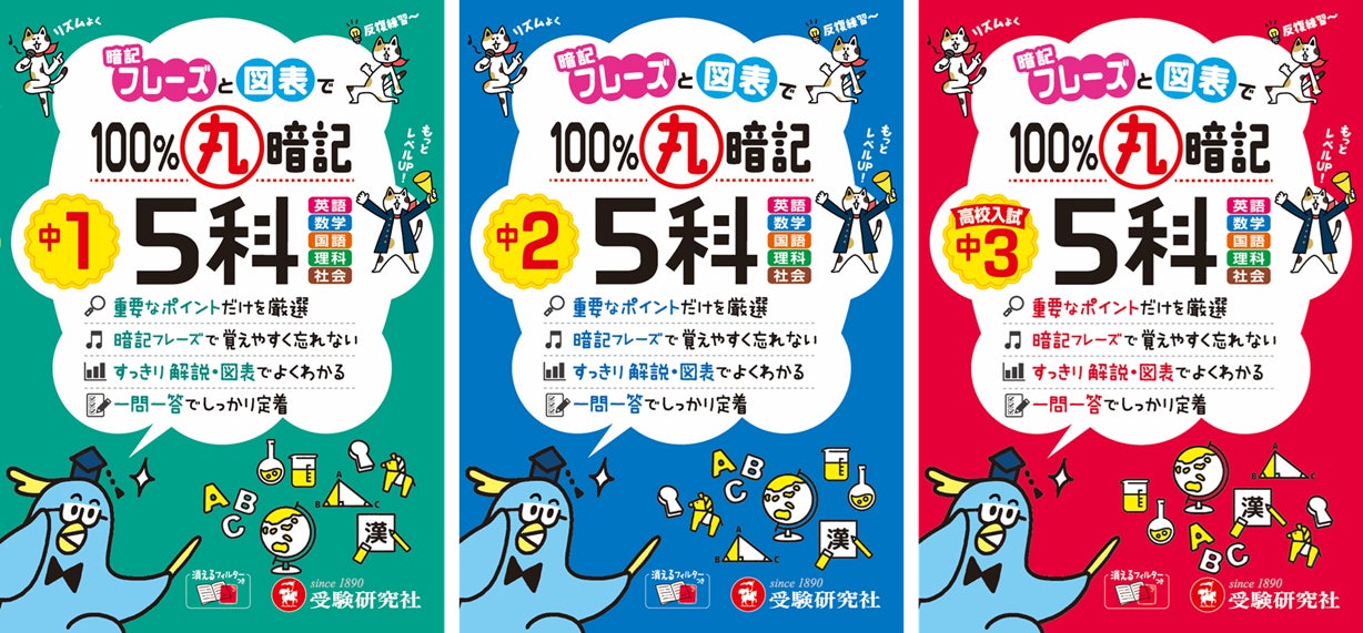 テスト前、教科書のポイントが絞れない中学生へ。<暗記フレーズ・声に出して>5科の要点をインプットしていく『中学 100%丸暗記 5科』(中1/中2/中3)が新登場!