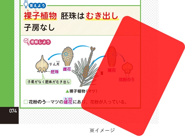 付属の赤い「消えるフィルター」を使えば理解しておきたい大切なところが消えるので、何度も学習できます。