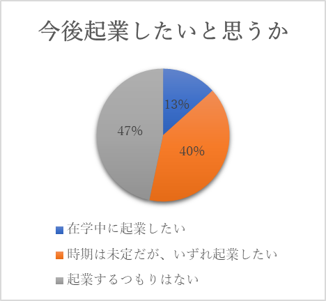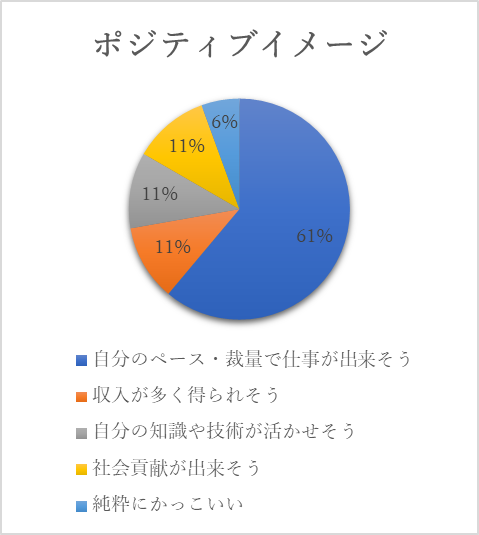 一方、多くの学生が、自由裁量がある点に魅力を感じており、「仕事を強いられることなく自由に働ける環境」下で、精神的負担を感じない事が起業意欲の根底にある事が伺えます。