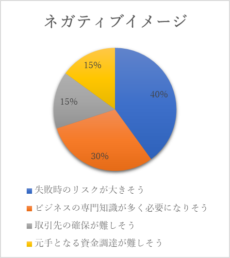 最近3年間は、新型コロナの感染拡大や物価高騰等の外的環境変化により、経営状況の悪化、廃業件数の増加が多く取り沙汰されている事から、「起業=稼げる」というイメージが薄れており、多くの専門知識が必要な上に失敗時のリスク不安が生じる点が、“割に合わない”ネガティブ面として捉えられている様に思います。