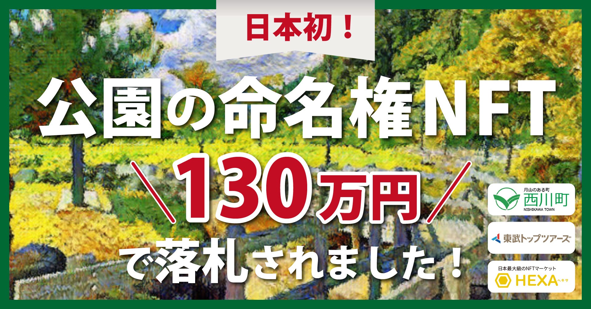 山形県西川町の公園命名権NFTオークション、130万円で落札!ネーミングライツNFTで地方創生を行うNFTマーケットのHEXA(ヘキサ)