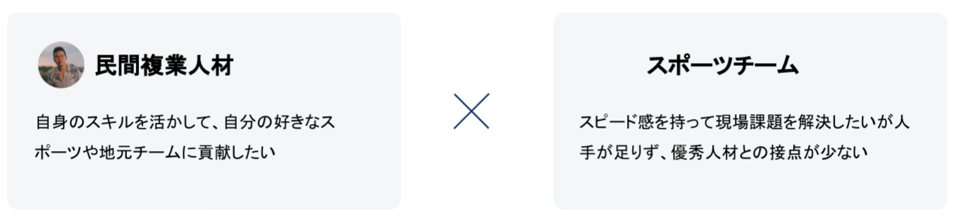 そこでAnother worksでは、スポーツチームと専門的なスキルをもつ複業人材とのマッチングを支援すべく、「複業クラウド for Sport」を提供することで、人材不足解消に寄与しています。さらに、これまで働く場所や環境でスポーツチームに携わることを諦めていた人材とのマッチングも創出できるため、外部人材との相互のスキルシェアによる組織強化も実現します。