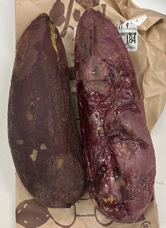 ◀他の焼き芋と比較すると、右側の「はるか姫」の方が蜜があふれてきているのが良く分かります!