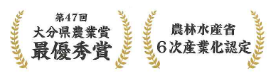 また、「第56回農林水産祭参加の農林水産省・全国担い手育成総合支援協議会共催平成28 年度全国優良経営体表彰」優秀賞や、「第47回大分県農業賞」最優秀賞、農林水産省「6次産業化認定」など、様々な賞に入賞しています。
