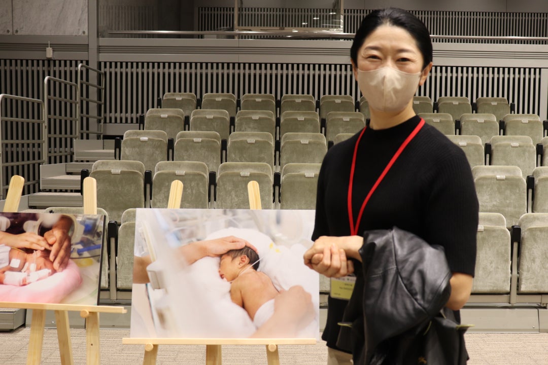 その後、早産を経験されたゴーウィン様から、NICU入院中のできごと、早産を実際に経験して感じたことや想いなどついてお話をいただきました。「出産直後は、小さく未熟に産んでしまったことへの罪悪感と自責の念を抱えていました。退院後も小さく生まれたこどもとその家族には、多様な支援が長期に必要であることを広く社会に知ってもらいたいです。」と語りました。