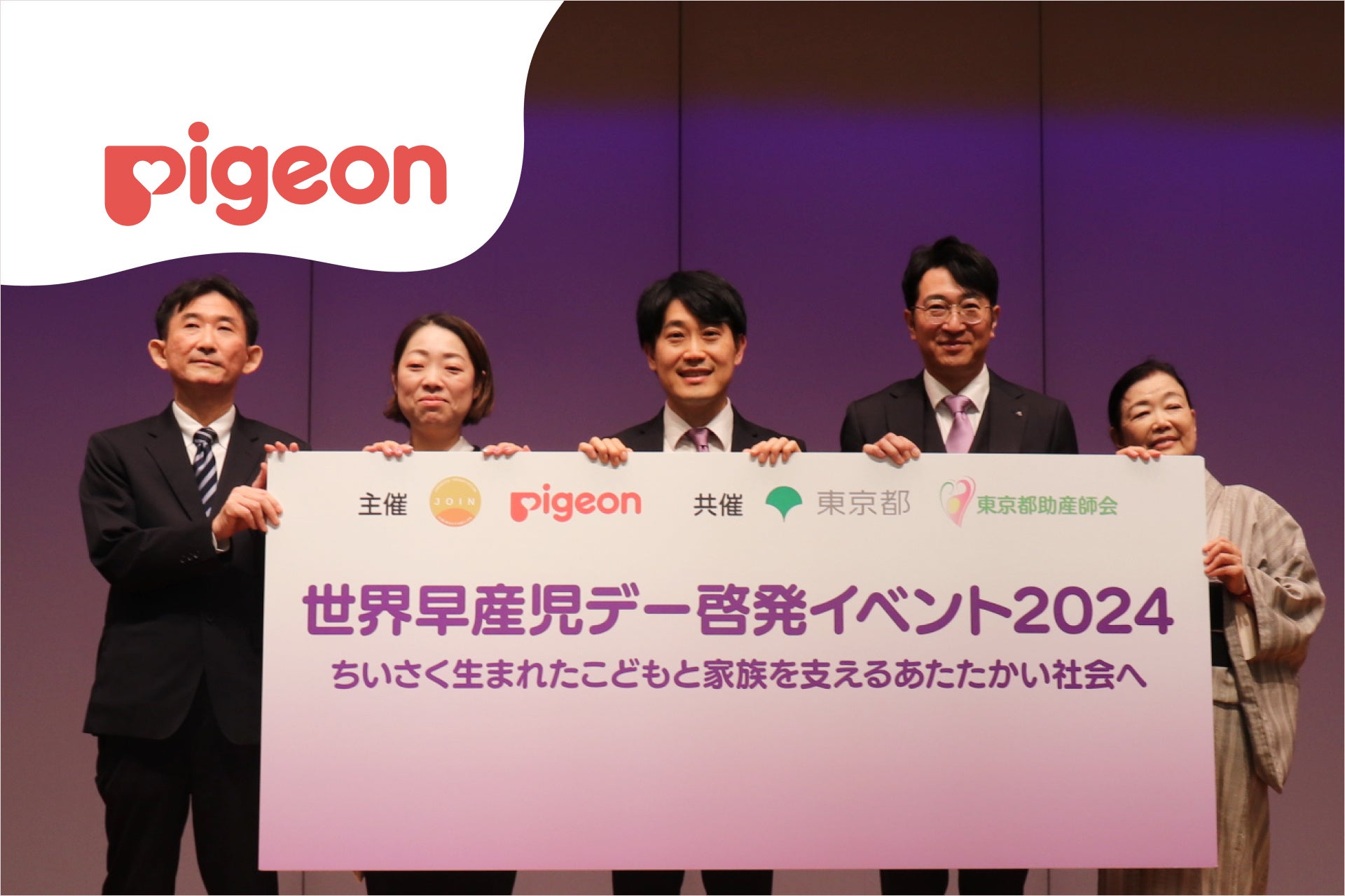 ピジョン株式会社(本社:東京、社長:北澤 憲政)と日本NICU家族会機構(JOIN)は、11月17日の世界早産児デーに合わせ、共同主催で「世界早産児デー啓発イベント2024 ~ちいさく生まれたこどもと家族を支えるあたたかい社会へ~」を2024年11月16日(土)に東京都庁第一本庁舎5階 大会議場にて開催しました。また日没後には東京都主催により、都庁第一本庁舎が世界早産児デーのシンボルカラーである紫色にライトアップされました。