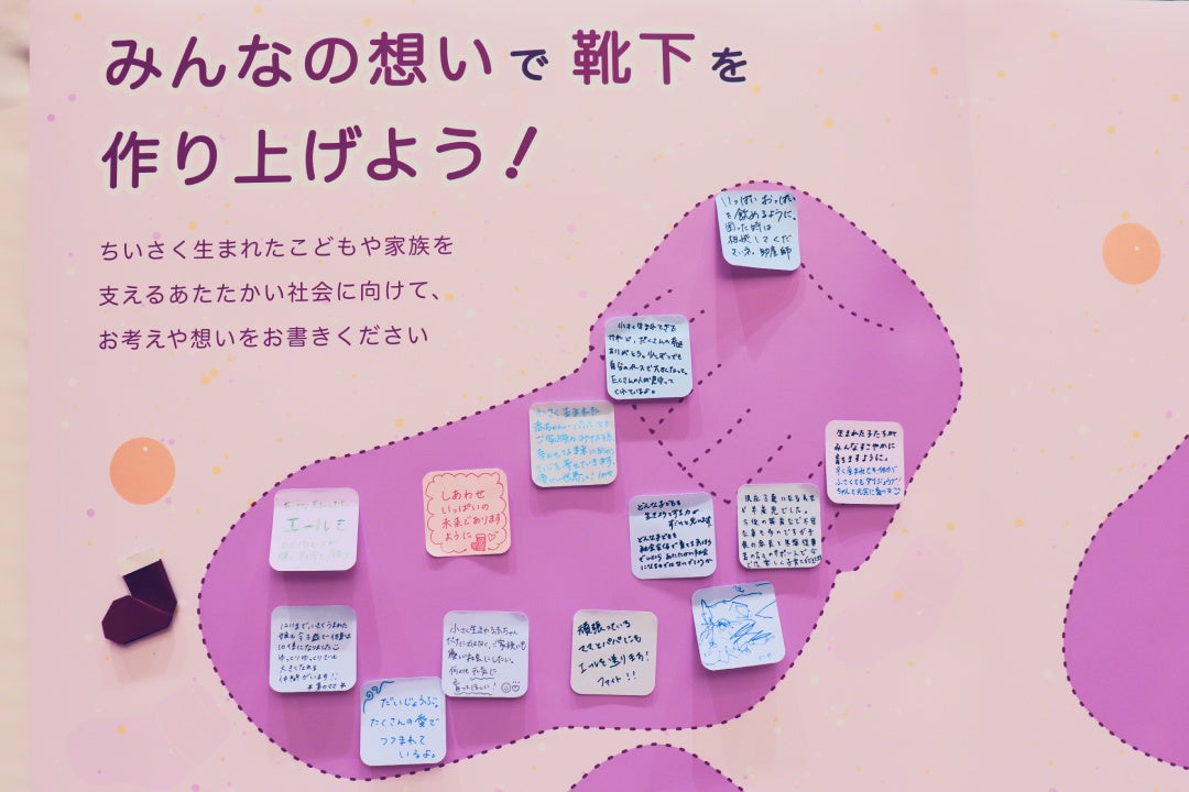 展示エリアでは、「皆で作り上げる、早産で生まれたこどもとそのご家族への応援メッセージボード」や「早産で生まれた赤ちゃんの写真展示」などを展示。早産児とそのご家族について知り、考えるきっかけを提供しました。