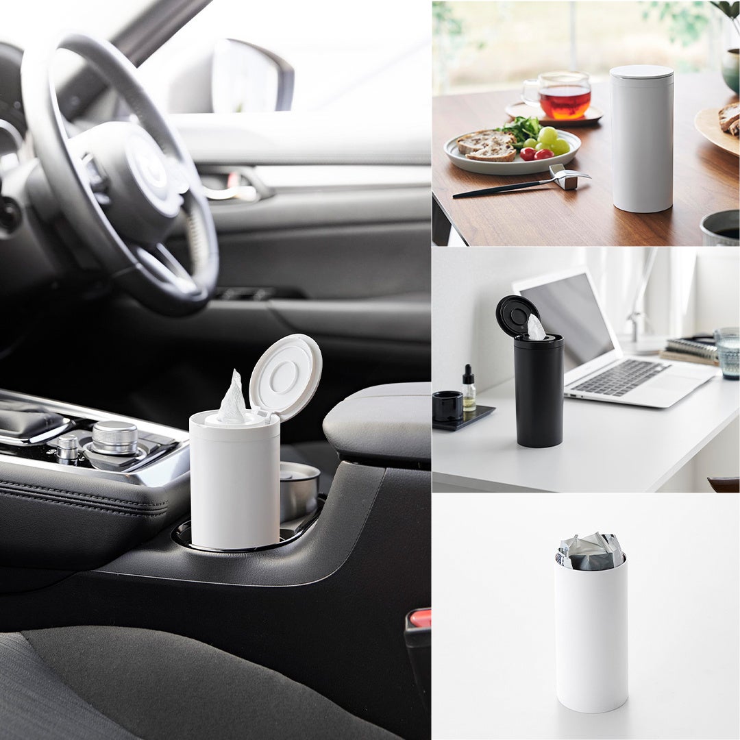 車のドリンクホルダーにピッタリ収まるボトル型のウェットティッシュケース。