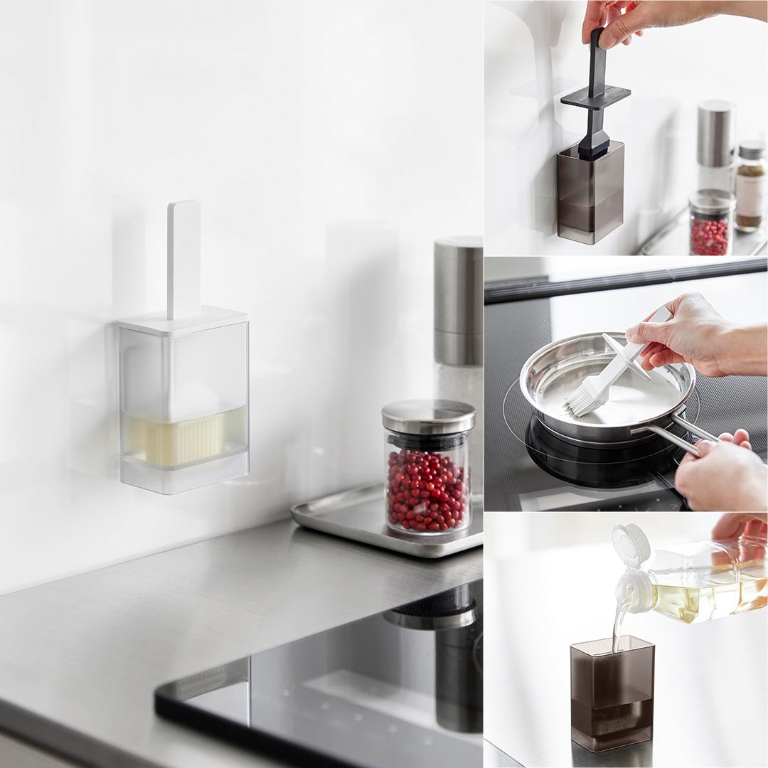 コンロ周りの壁面にマグネットで簡単に取り付けできる、サッと使えて便利なシリコーン製の油引き。