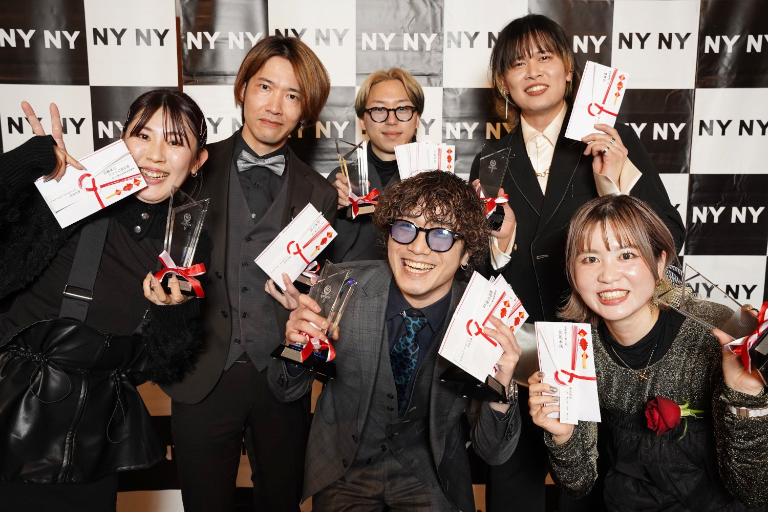 「NYNY AWARDS」は新年会の際にコンテストや売上などで優秀な成績を収めたスタッフを表彰する社内アワードです。会社の方向性の提示・スタッフのモチベーションの向上・他店舗スタッフとのコミュニケーション促進・企業アイデンティティ普及・取引先との良好な関係構築の場として毎年開催されます。ゲームコーナー、商品くじ引きなどのレクリエーションも含まれているため、パートナー企業など外部からご参加の皆さまに楽しくご参加いただけるイベントです。