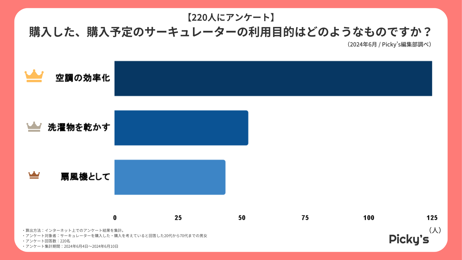 購入した、購入予定のサーキュレーターの利用目的はどのようなものですか?