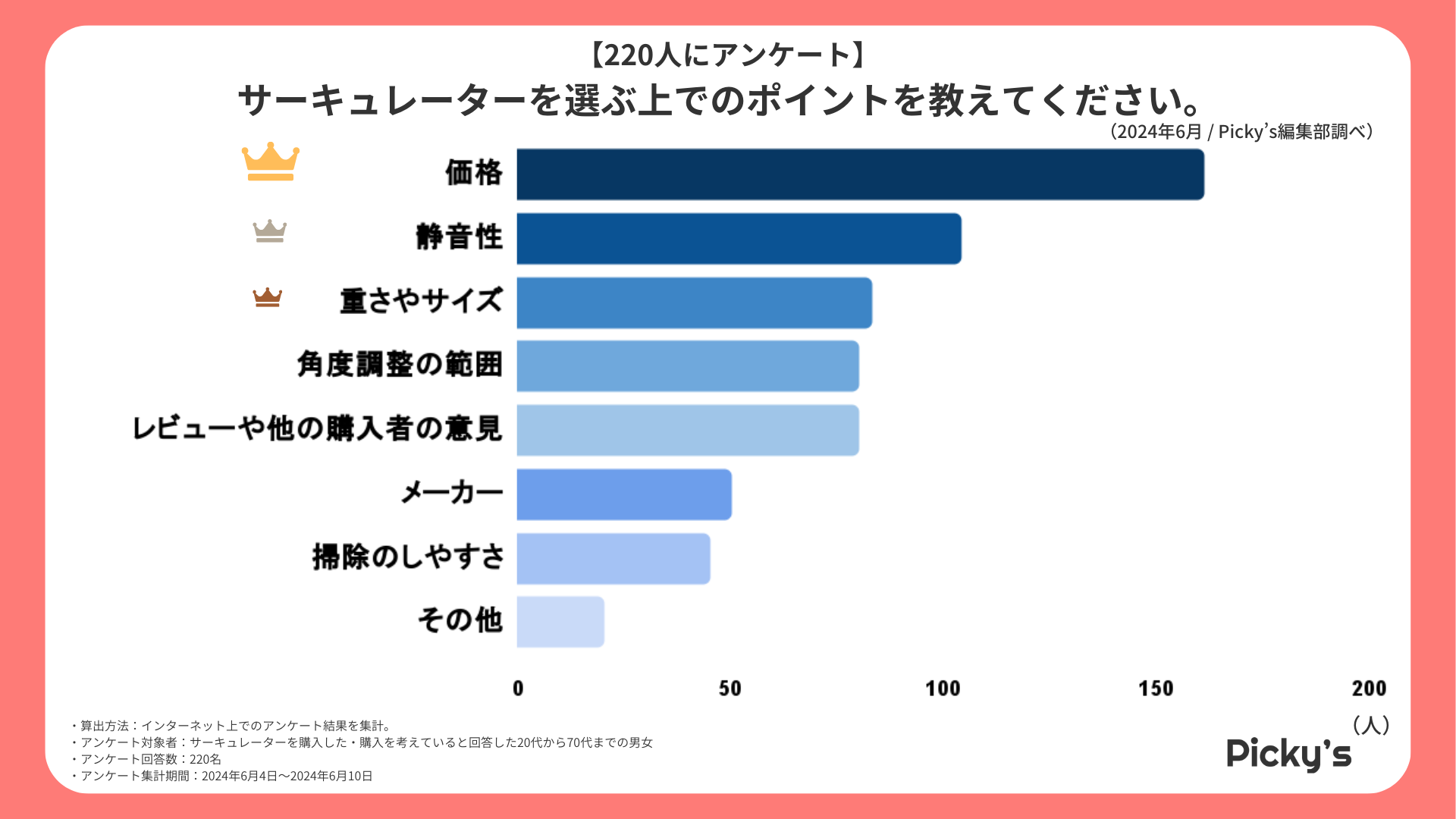 「価格」「静音性」「重さやサイズ」といった回答が上位に挙がりました。