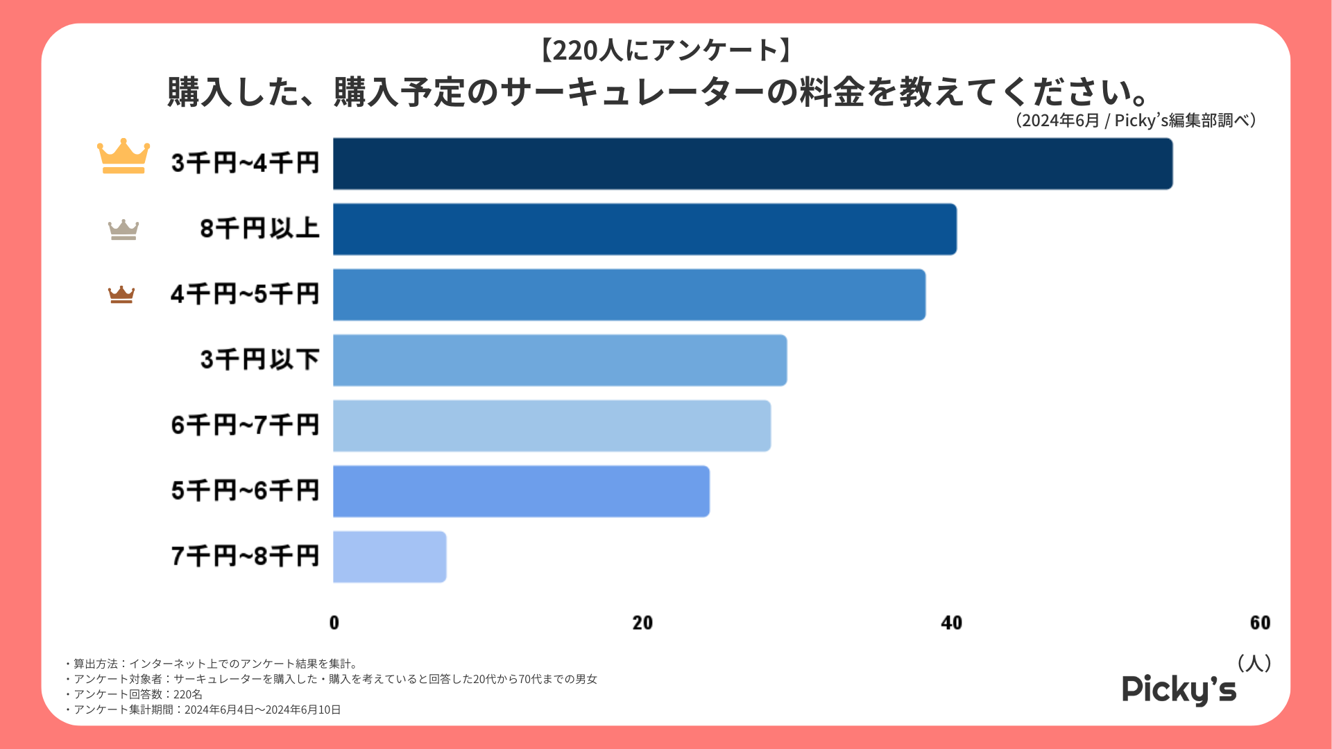 「3千円~4千円」「8千円以上」「4千円~5千円」の価格帯が多く選ばれました。