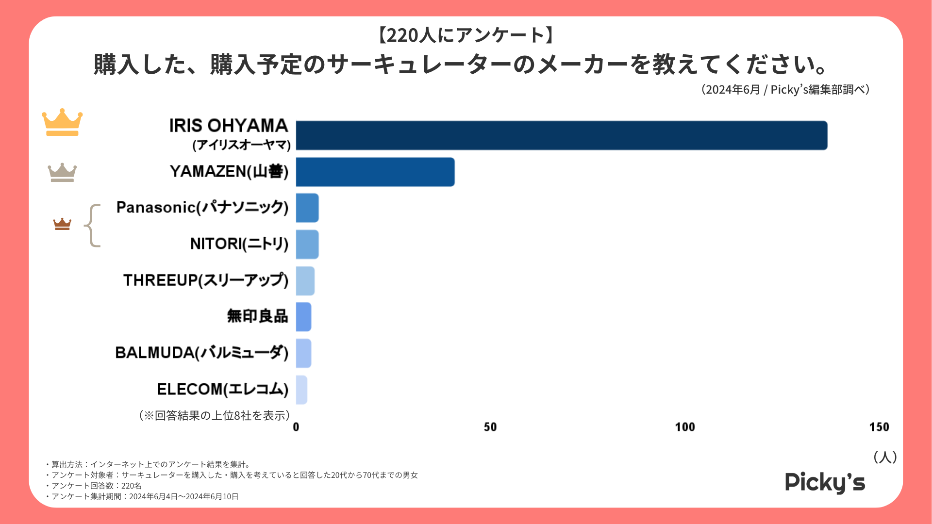 「Picky’s」は、インターネットショッピングにおいて、購入前に試せない・選ぶべきものがわからないという課題の解決を目標に、あらゆる商品のおすすめランキングや検証レビューを紹介するサイトです。このたびPicky’s(https://rentry.jp/note/)では、夏需要に先駆けて、サーキュレーターについてインターネット上でアンケート調査を行いましたので発表いたします。