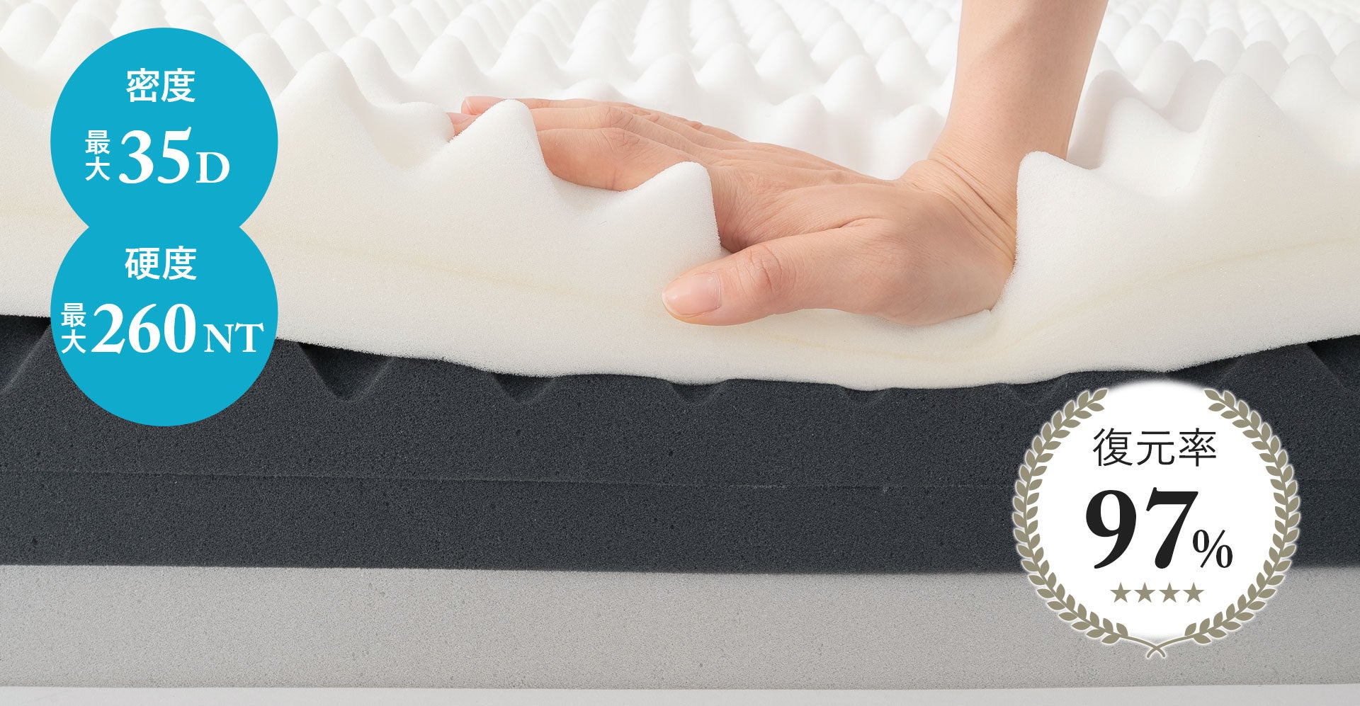 最大密度35D・最大硬度260NTクラスの高反発ウレタンを採用。
