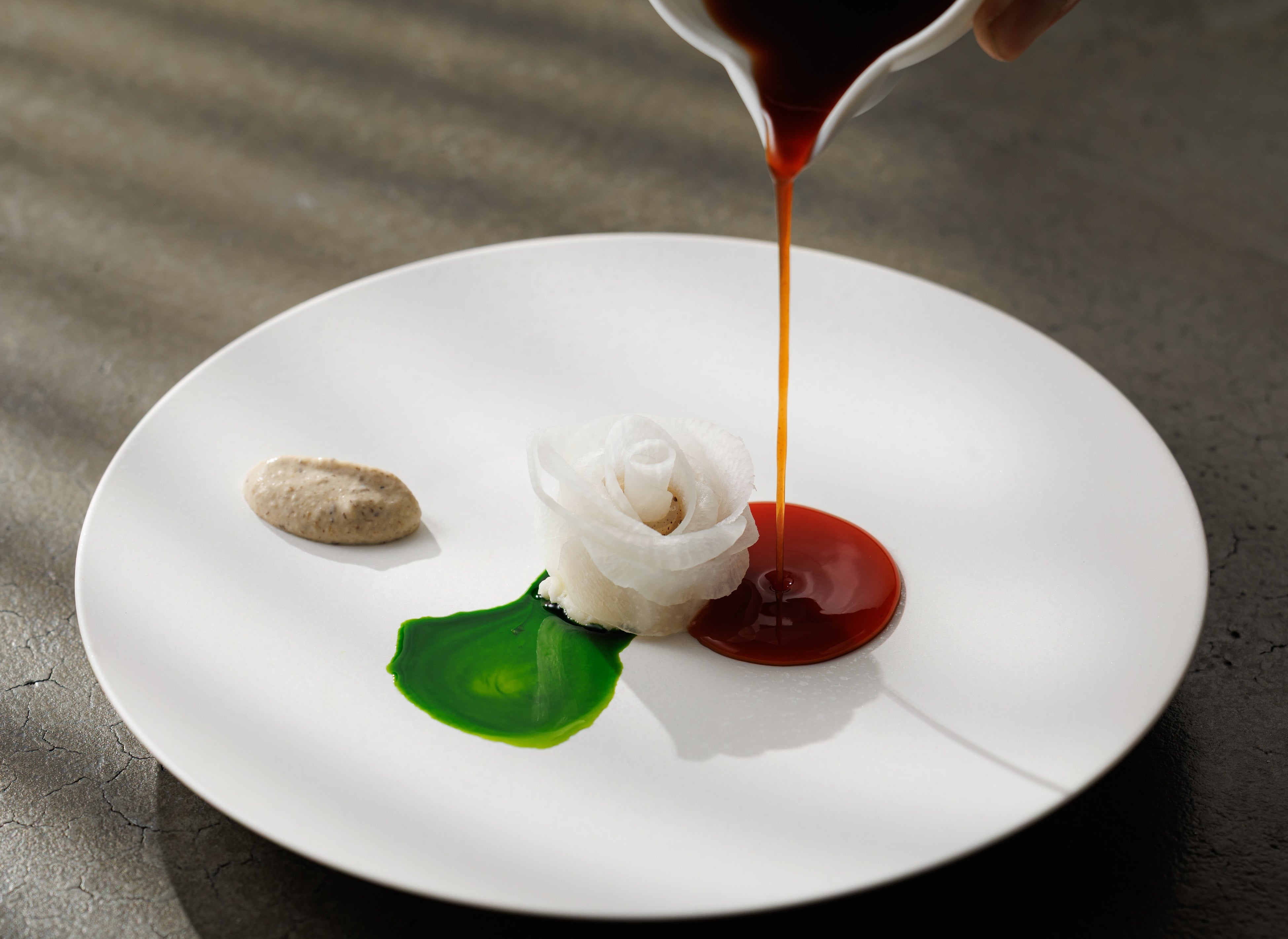 群馬の大自然と生産者が育んだゆたかな食材をシェフの片山ひろがフレンチイノベーティブの料理「上州キュイジーヌ」としてご提供します。劇場型オープンキッチンで、料理ができる様子を見ながらシェフたちとの会話を楽しめます。