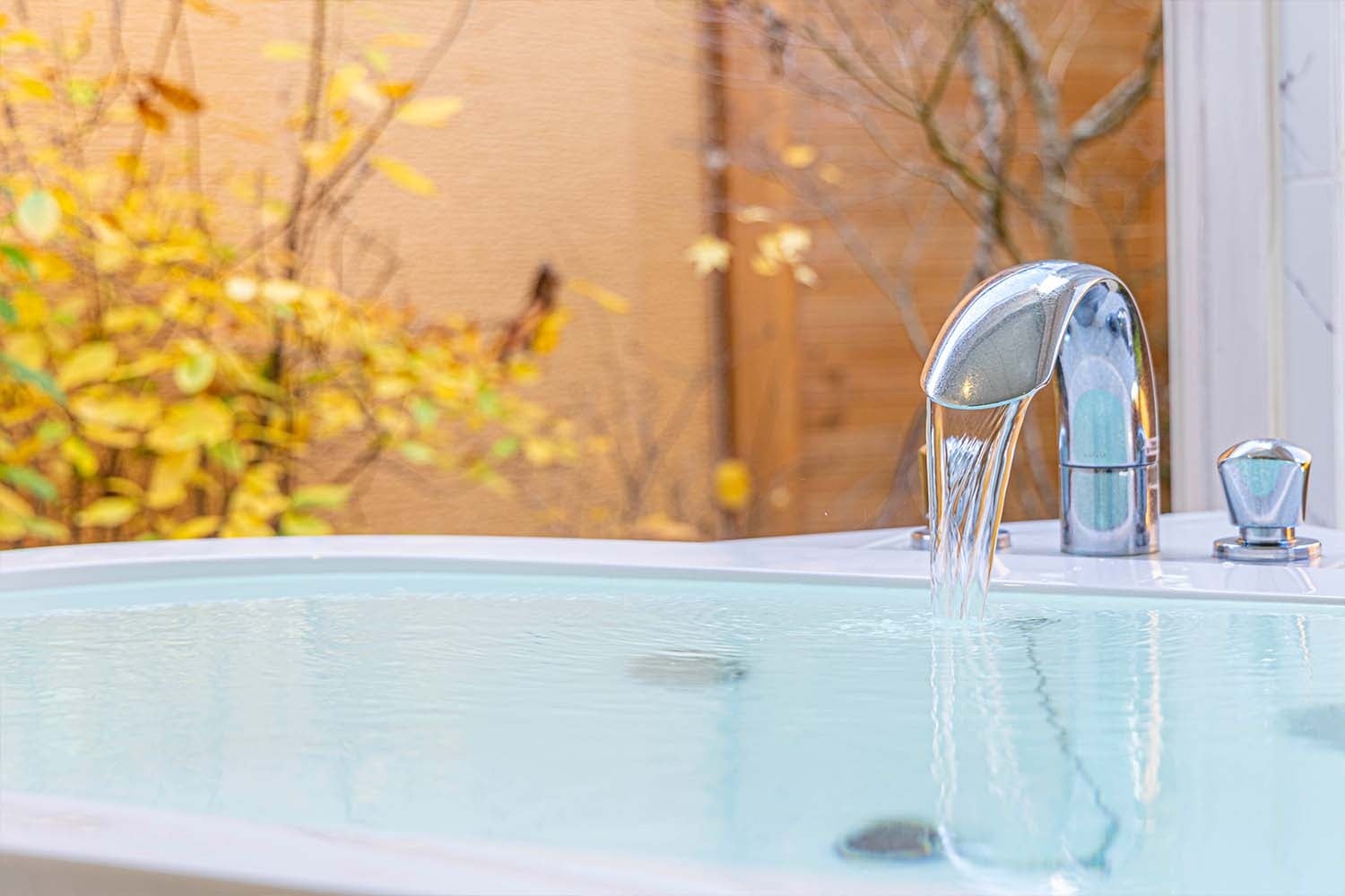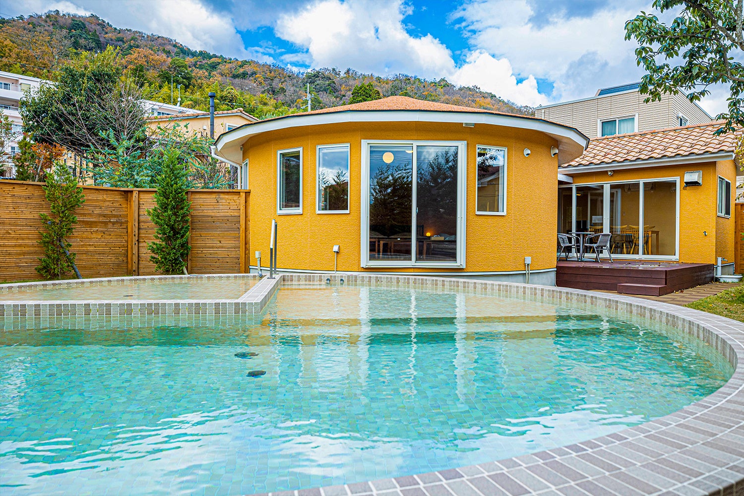 自家源泉を使用した客室温泉、愛犬と一緒に入れるプライベートプールを配したアクティブな空間。