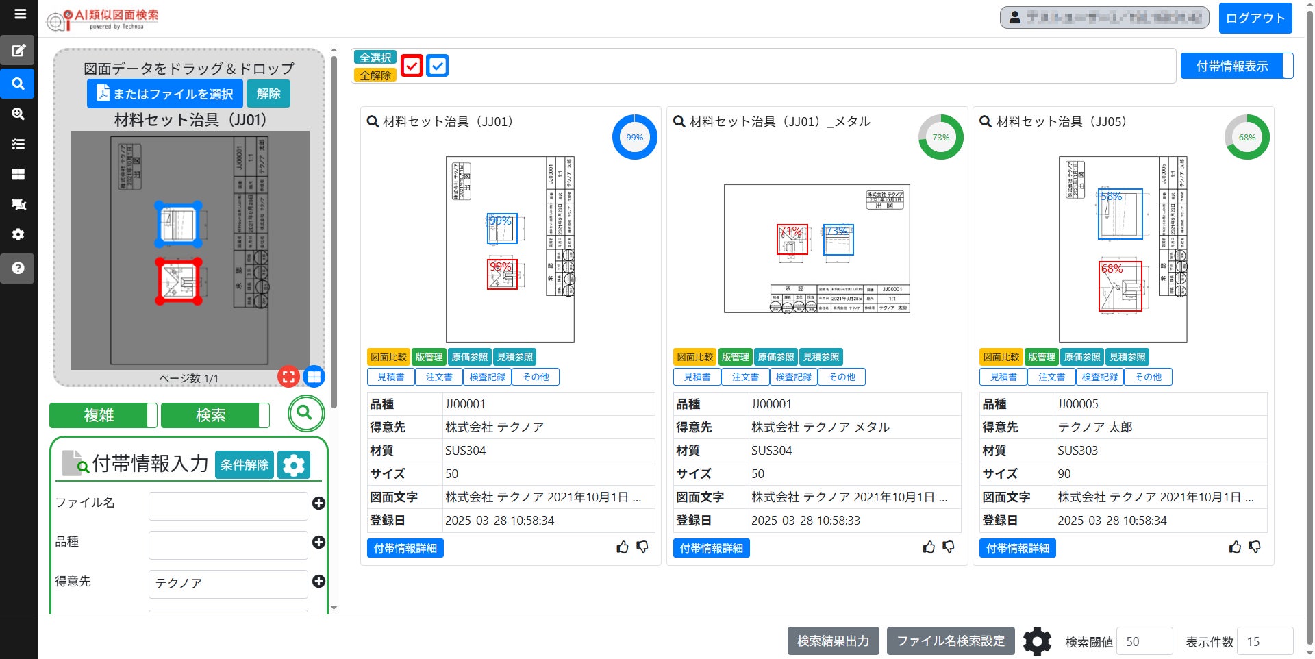利用企業に合わせたAIチューニング+付帯情報検索で最適図面をスピーディーに抽出