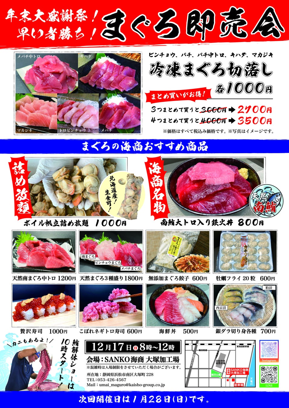 今年最後の浜松仲卸『SANKO海商』のまぐろ即売会は、2023年12 月17日(日)8:00~12:00開催!