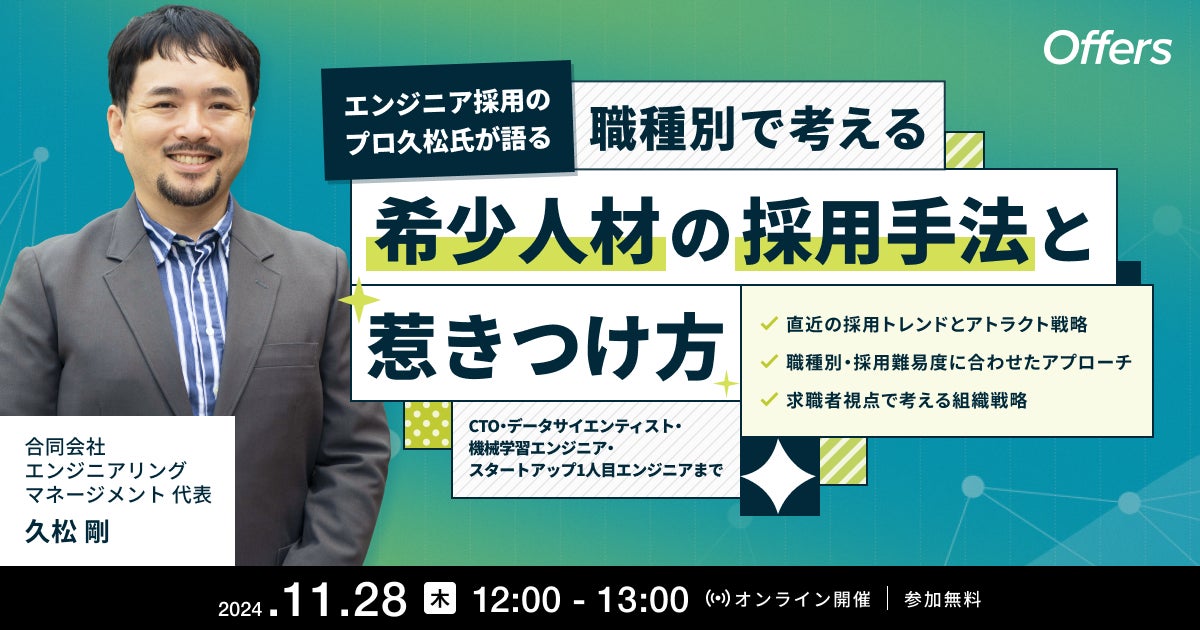 【エンジニア採用のプロ久松氏が語る】職種別で考える希少人材の採用手法と惹きつけ方~CTO・データサイエンティスト・機械学習エンジニアから、スタートアップ1人目エンジニアまで~